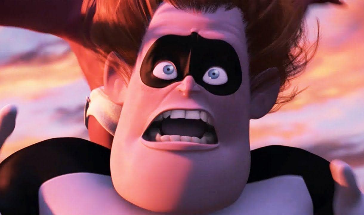 Syndrome was actually beaten by the superpowered baby and then tries to escape on his hoverjet; but Mr.Incredible tosses a car at him and Syndrome’s cape gets sucked into the jet’s turbine and dies. So much for becoming a Superhero so badly and turning into super villain.